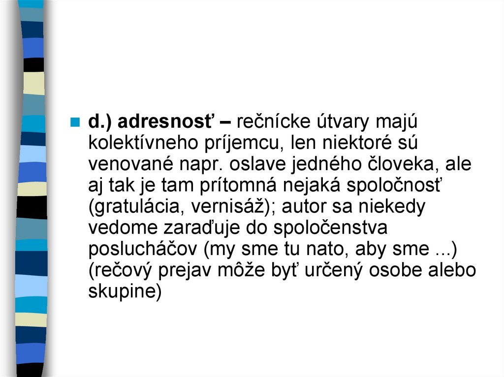 d.) adresnosť – rečnícke útvary majúkolektívneho príjemcu, len niektoré sú