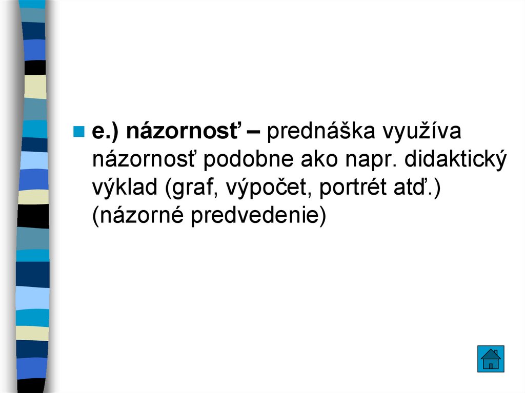 e.) názornosť – prednáška využívanázornosť podobne ako napr. didaktický