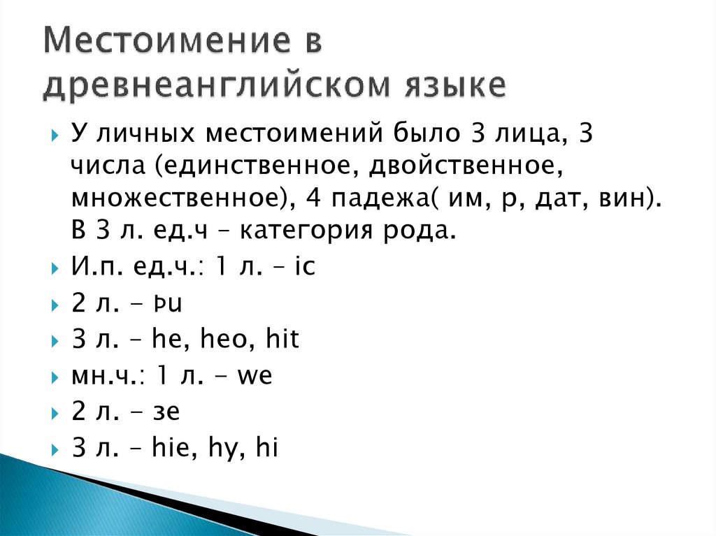 3 л. – he, heo, hit