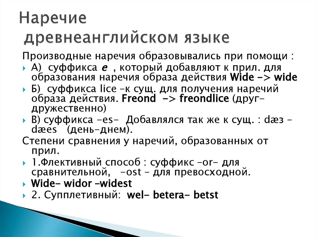 образования наречия образа действия Wide -> wide