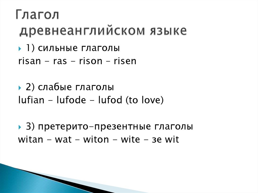 1) сильные глаголыrisan - ras - rison – risen