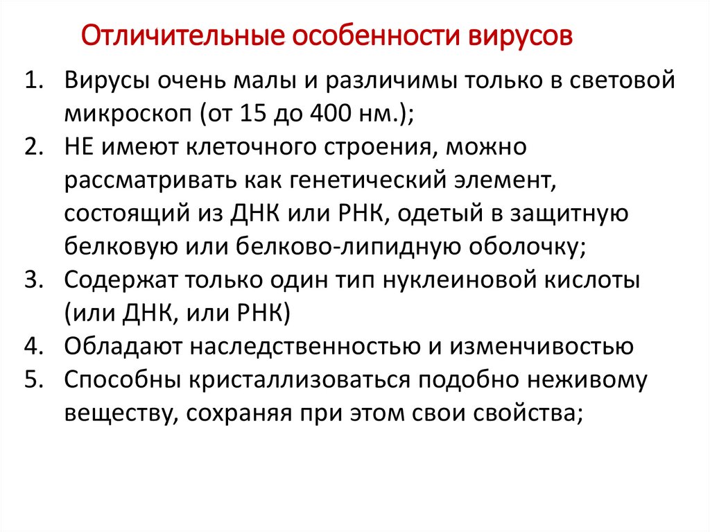2. Отличительные особенности вирусов