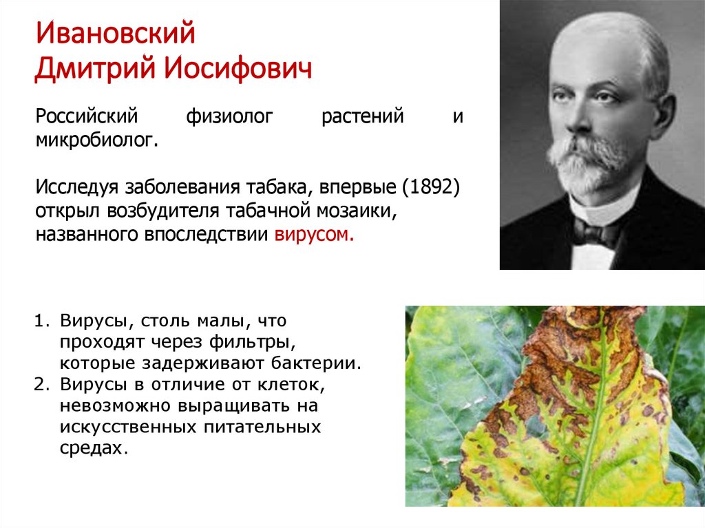 открыл возбудителя табачной мозаики,