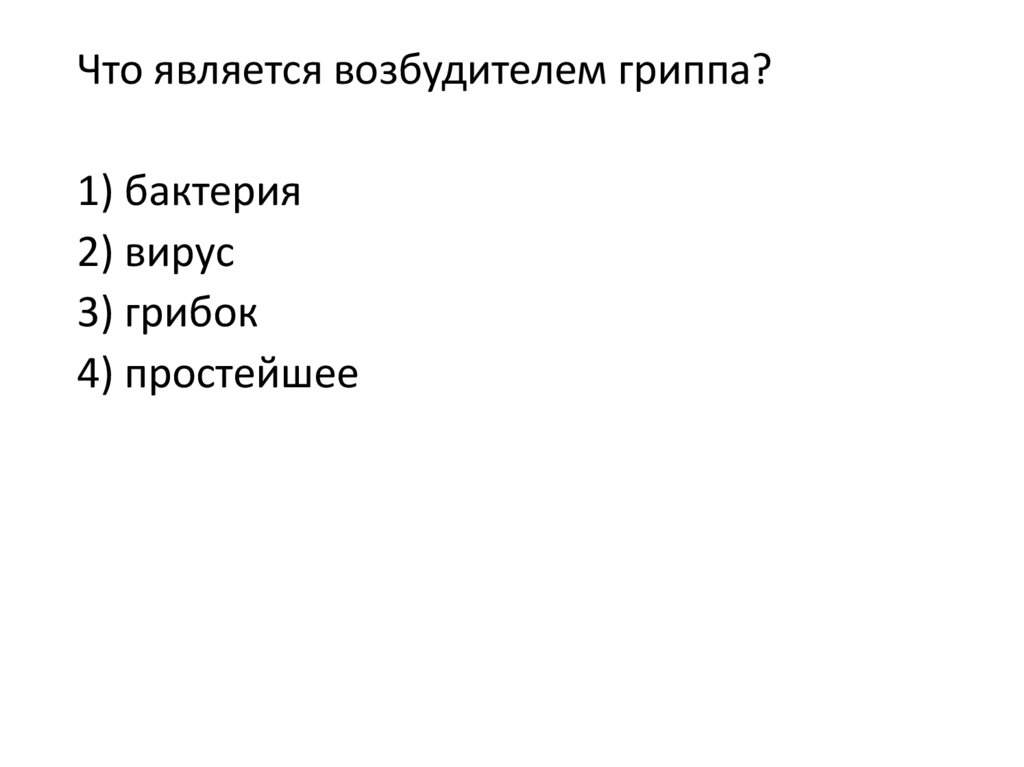 Что является возбудителем гриппа?1) бактерия