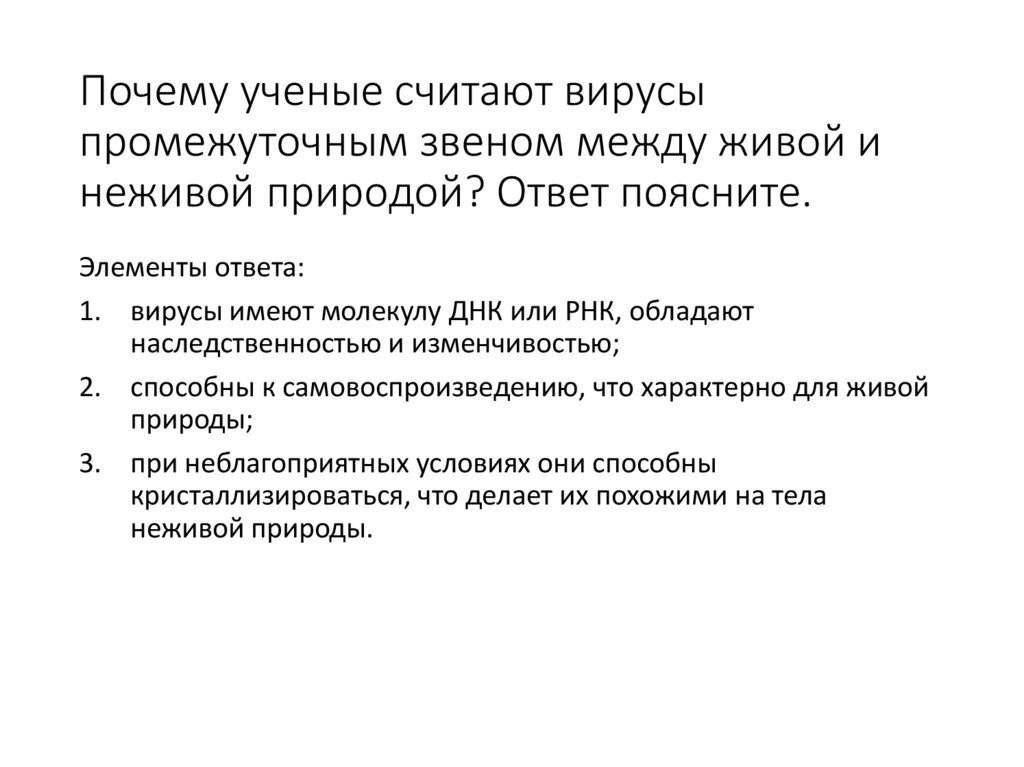 40. Почему ученые считают вирусы промежуточным звеном между живой и неживой природой? Ответ поясните.