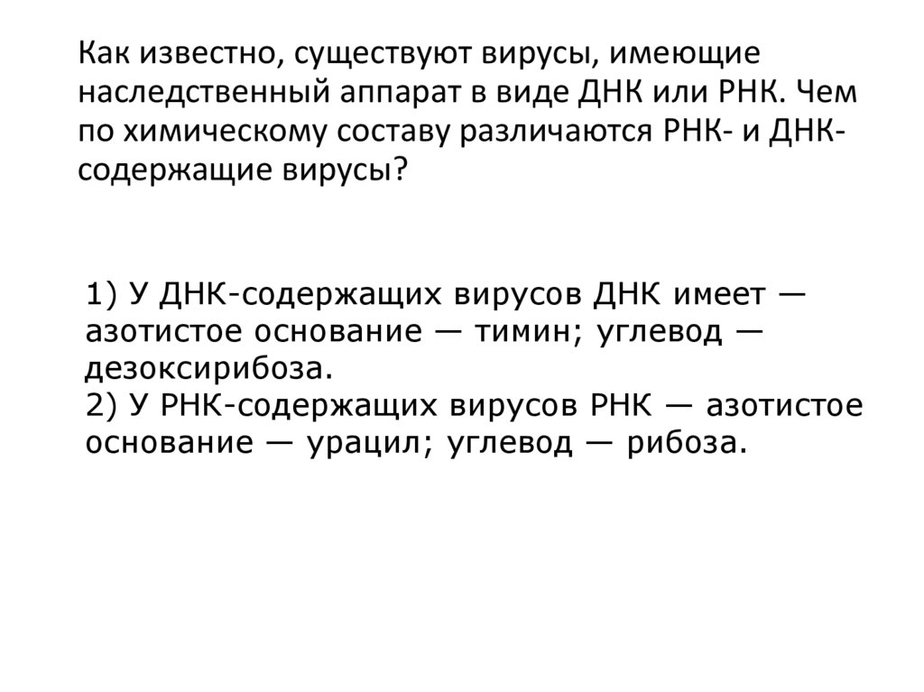 по химическому составу различаются РНК- и ДНКсодержащие вирусы?