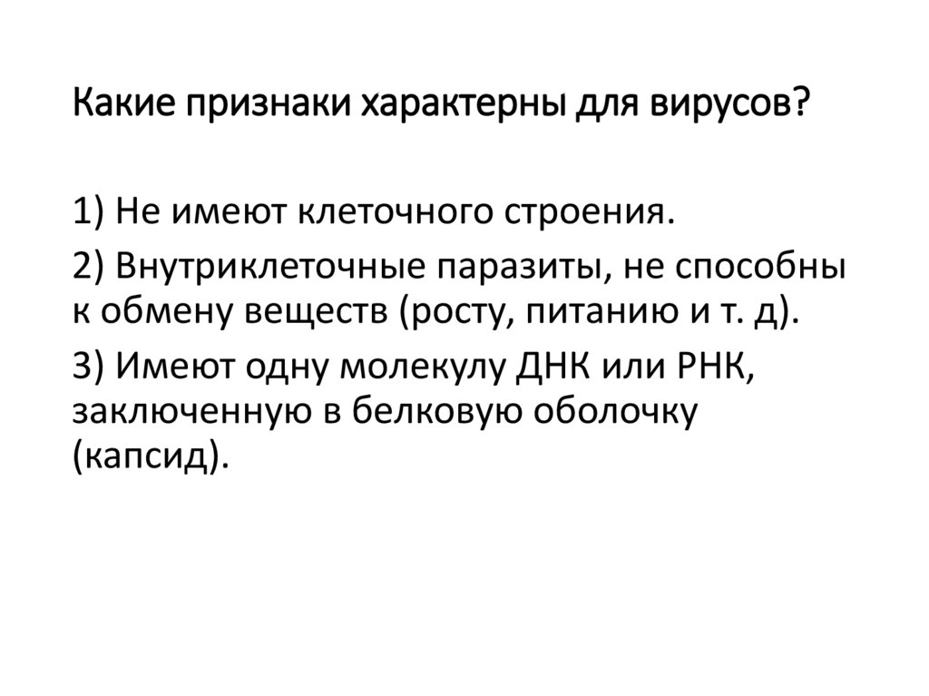 42. Какие признаки характерны для вирусов?