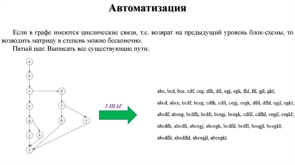 АвтоматизацияЧетвертый шаг. Рассчитать все пути определенной длины, которые присутствуют в графе. Для этого