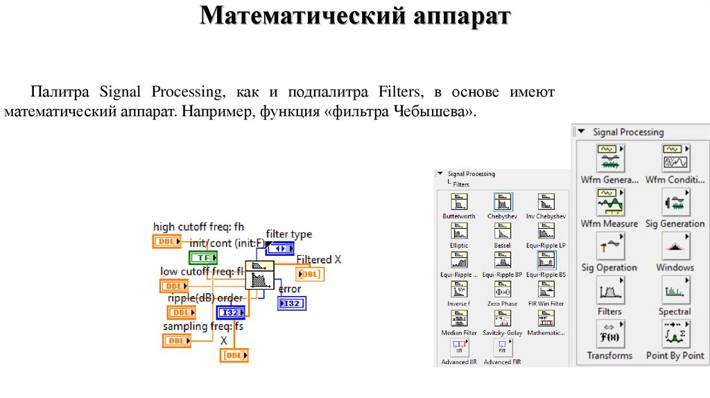 Математический аппаратПалитра Signal Processing, как и подпалитра Filters, в основе имеют