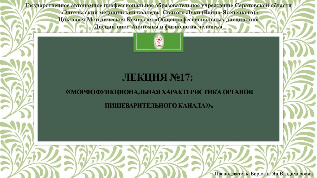 Государственное автономное профессиональное образовательное учреждение Саратовской области«Энгельсский медицинский колледж Святого Луки (Войно-Ясенецкого)»
