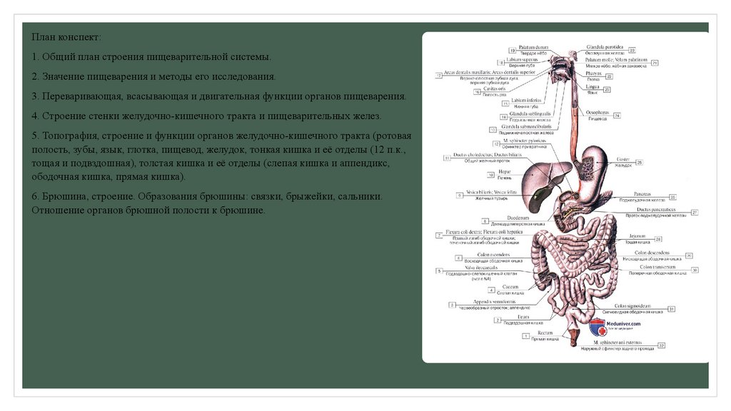 План конспект:1. Общий план строения пищеварительной системы.
