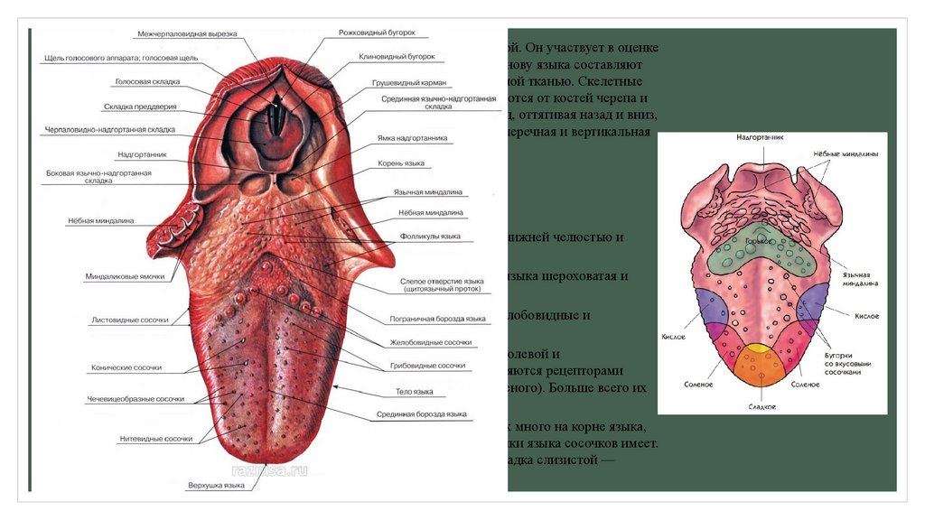 где они образуют язычную миндалину. Нижняя поверхность слизистой оболочки языка сосочков имеет.