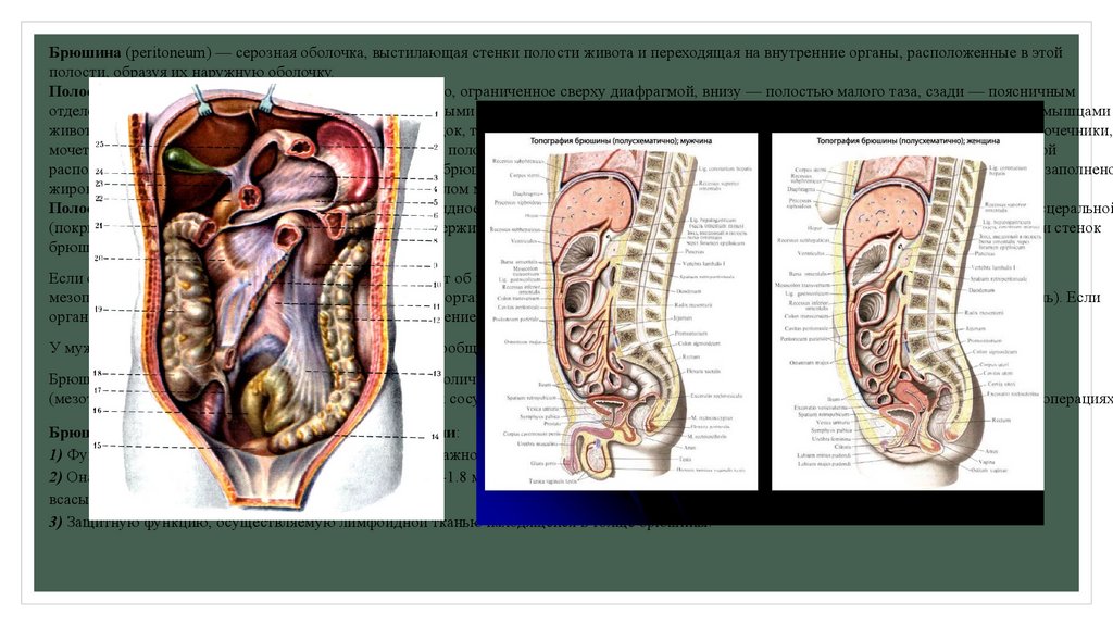 6. Брюшина, строение. Образования брюшины: связки, брыжейки, сальники.