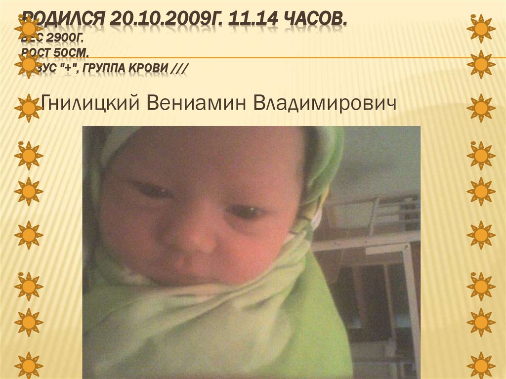 РОДИЛСЯ 20.10.2009Г. 11.14 ЧАСОВ.ВЕС 2900Г.
