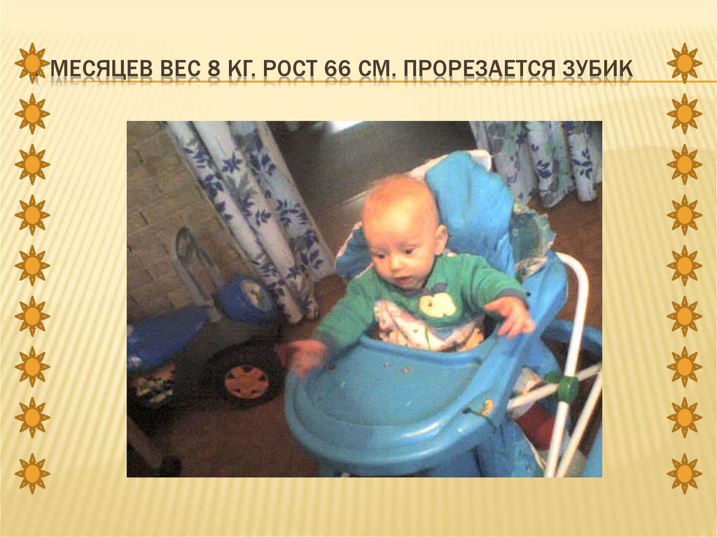 7 МЕСЯЦЕВ ВЕС 8 КГ. РОСТ 66 СМ. ПРОРЕЗАЕТСЯ ЗУБИК5.