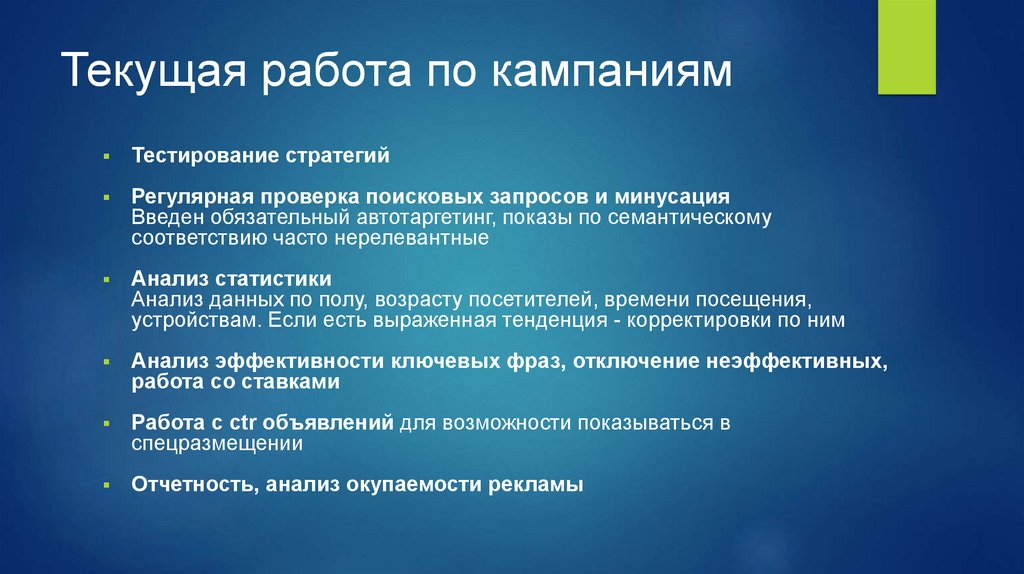 Анализ эффективности ключевых фраз, отключение неэффективных,