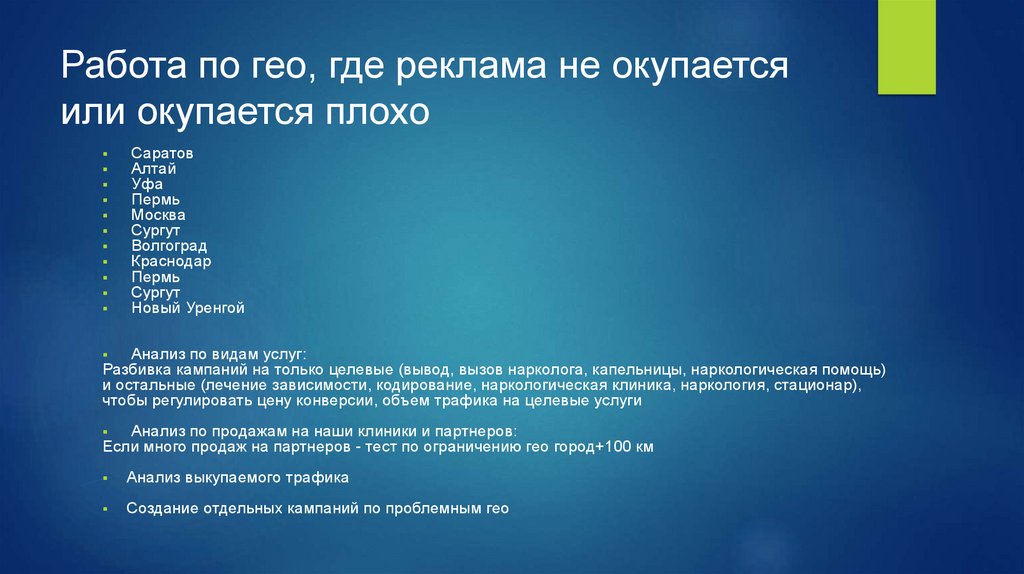 Работа по гео, где реклама не окупаетсяили окупается плохо