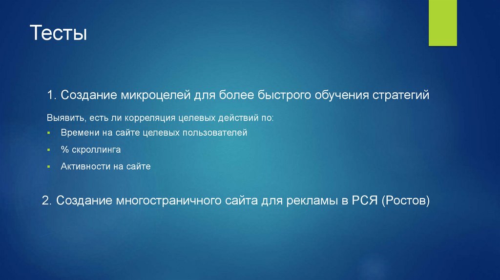 Тесты1. Создание микроцелей для более быстрого обучения стратегий