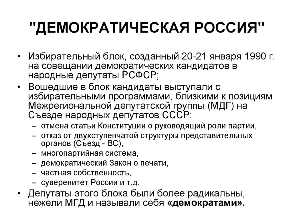 • Демократизация политического процесса, начавшаяся в периодперестройки, привела к утверждению в политической системе