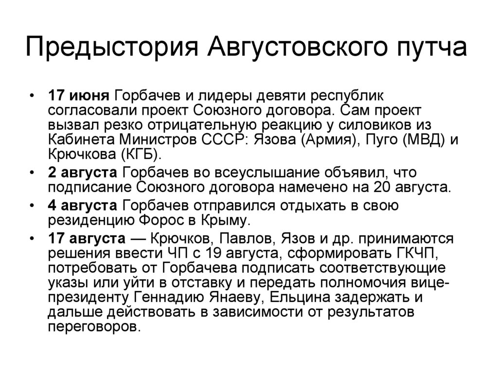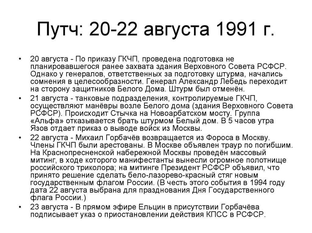 22 августа - Михаил Горбачёв возвращается из Фороса в Москву.