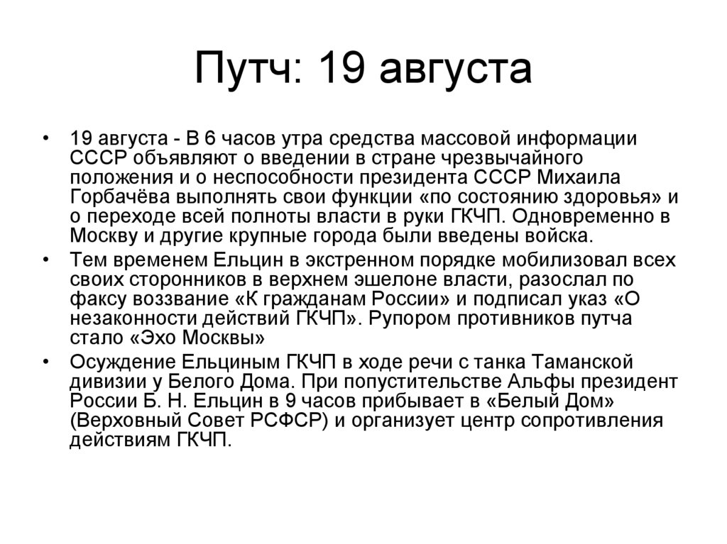 23 августа - В прямом эфире Ельцин в присутствии Горбачёва