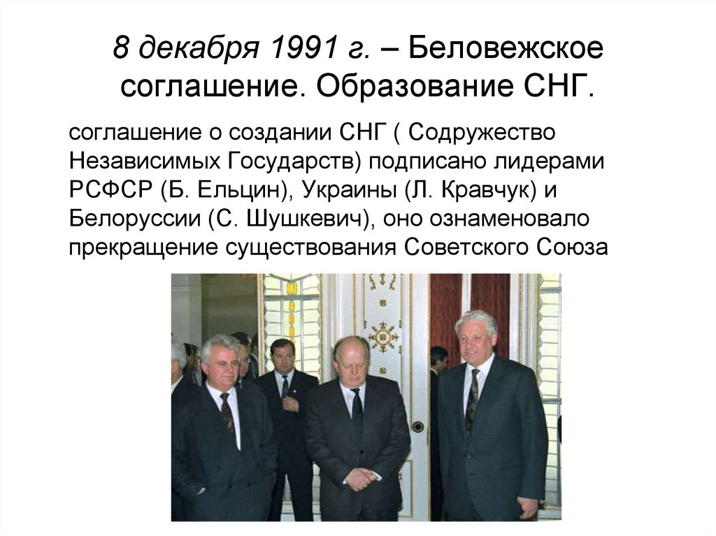 58. 8 декабря 1991 г. – Беловежское соглашение. Образование СНГ.