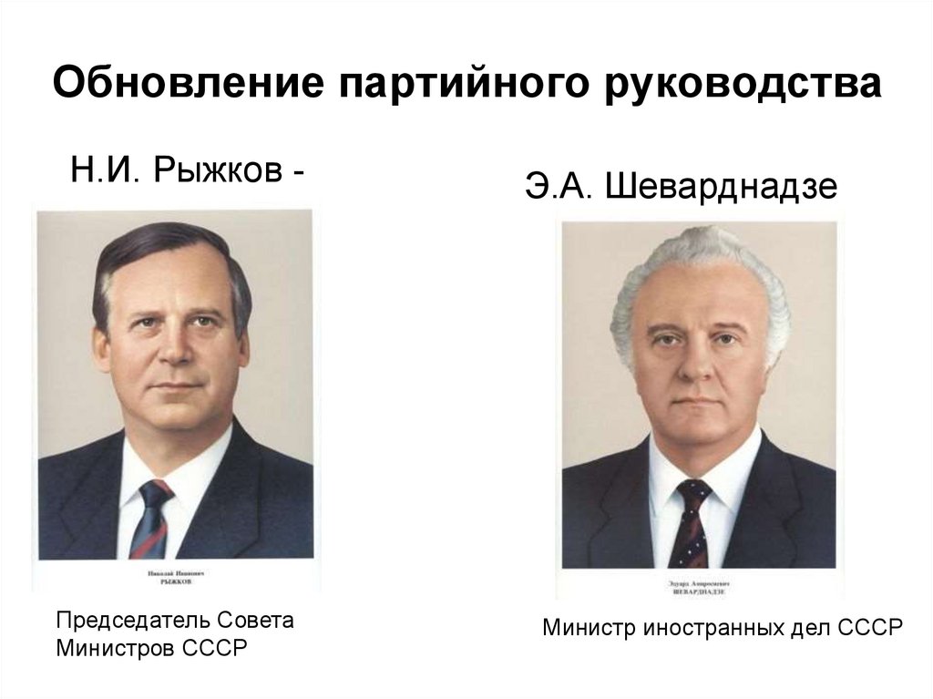политиков ( М.С.Горбачев, Н.И.Рыжков, А.Н.Яковлев,