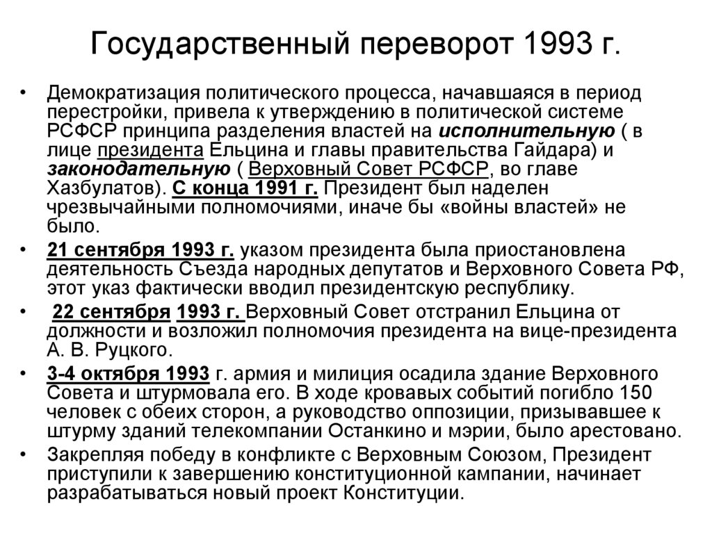 • 3-4 октября 1993 г. армия и милиция осадила здание Верховного