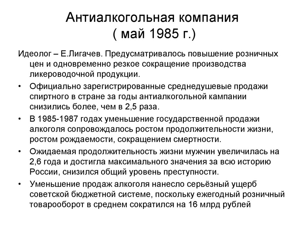 Идеолог – Е.Лигачев. Предусматривалось повышение розничныхцен и одновременно резкое сокращение производства