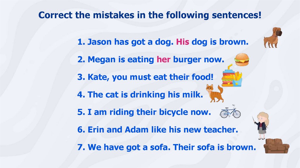 Correct the mistakes in the following sentences!1. Jason has got a dog. Her dog is brown.