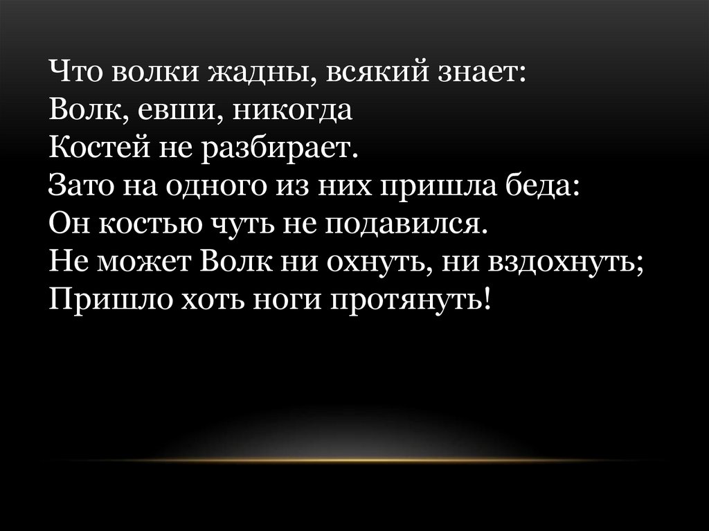 Что волки жадны, всякий знает:Волк, евши, никогда