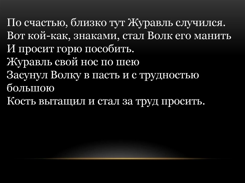 По счастью, близко тут Журавль случился.Вот кой-как, знаками, стал Волк его манить