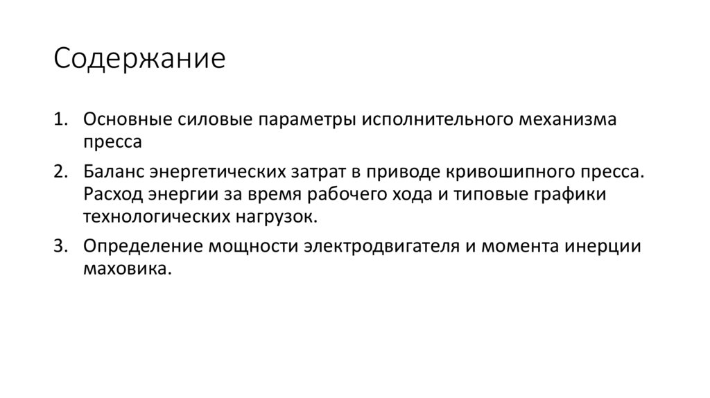 Кривошипные пресса Энерго-силовые параметры исполнительного механизма пресса