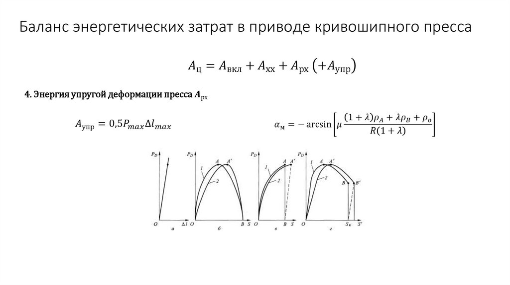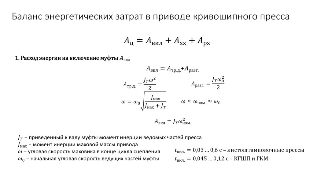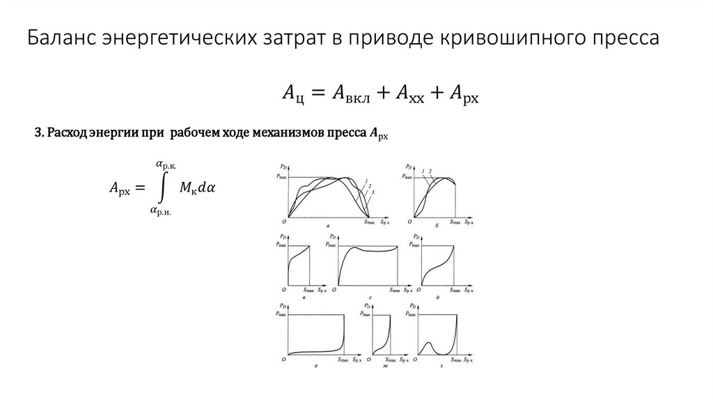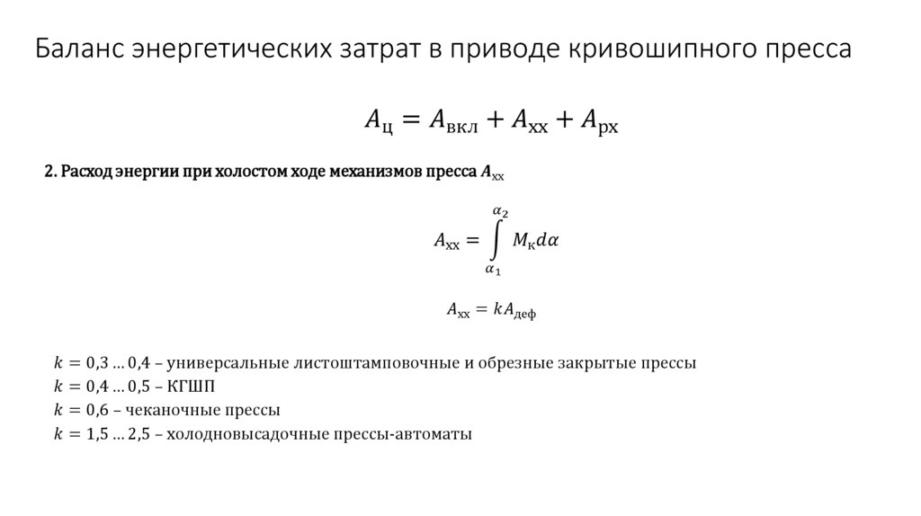 2. Баланс энергетических затрат в приводе кривошипного пресса.