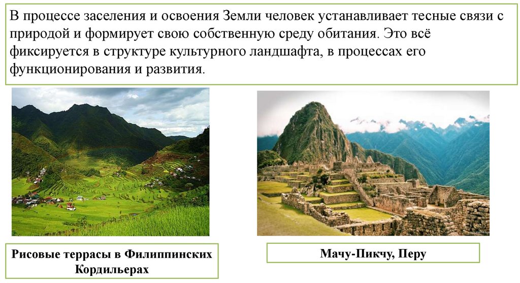 Культурный ландшафт, возникший в результате адаптации человека к окружающейприродной среде, обустройства и приспособления этой среды к потребностям и