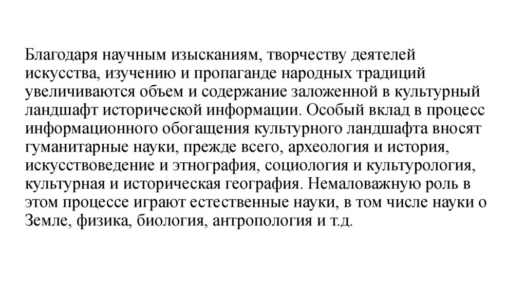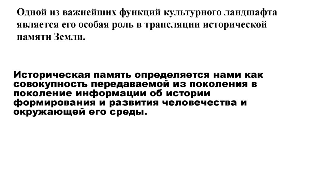 Одной из важнейших функций культурного ландшафтаявляется его особая роль в трансляции исторической