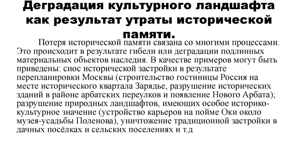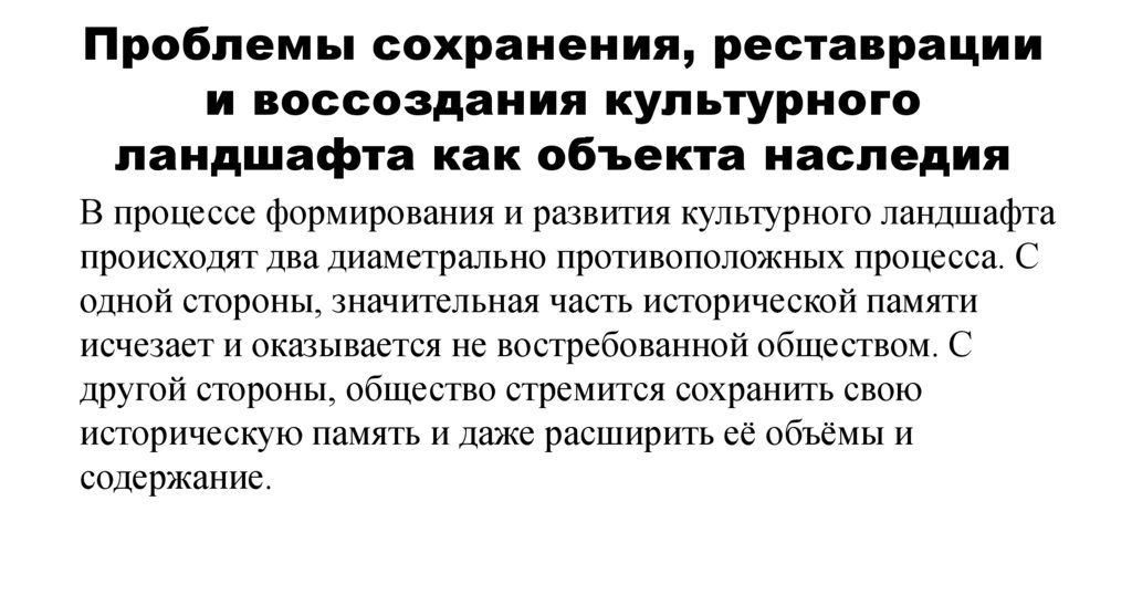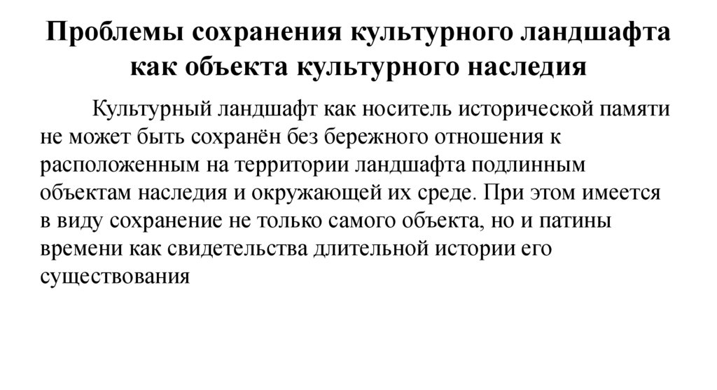 Проблемы сохранения культурного ландшафтакак объекта культурного наследия