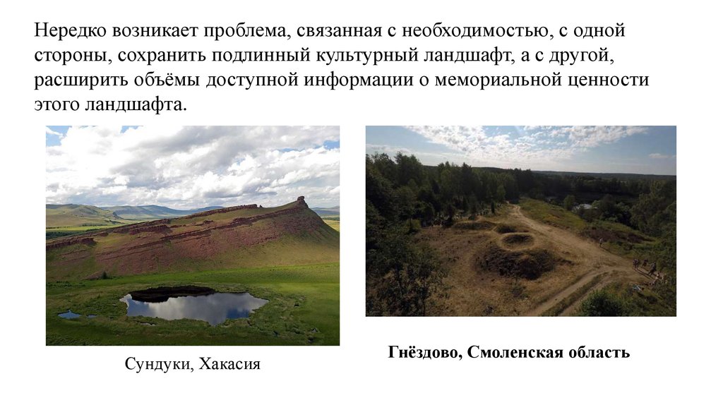 Нередко возникает проблема, связанная с необходимостью, с однойстороны, сохранить подлинный культурный ландшафт, а с другой,