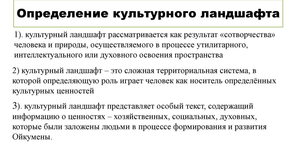 Определение культурного ландшафта1). культурный ландшафт рассматривается как результат «сотворчества»