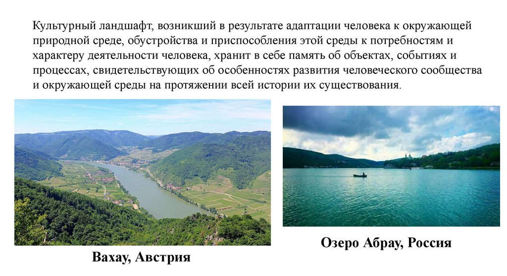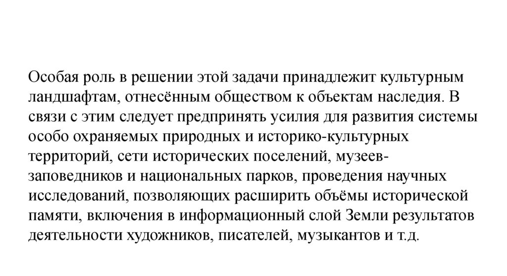 Особая роль в решении этой задачи принадлежит культурнымландшафтам, отнесённым обществом к объектам наследия. В
