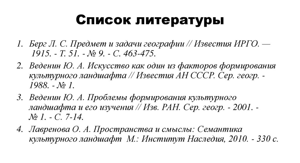Список литературы1. Берг Л. С. Предмет и задачи географии // Известия ИРГО. —