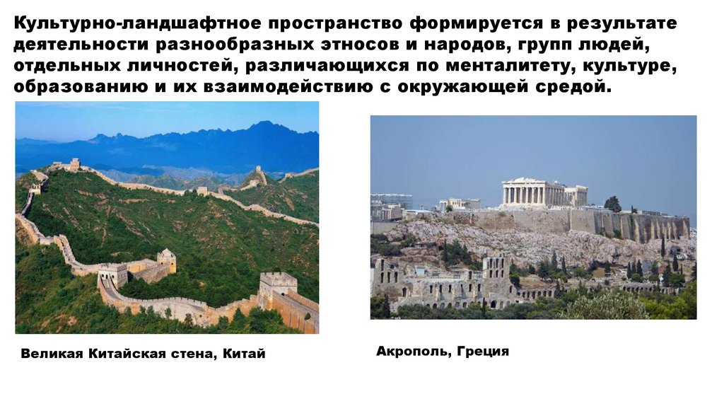 Культурно-ландшафтное пространство формируется в результатедеятельности разнообразных этносов и народов, групп людей,