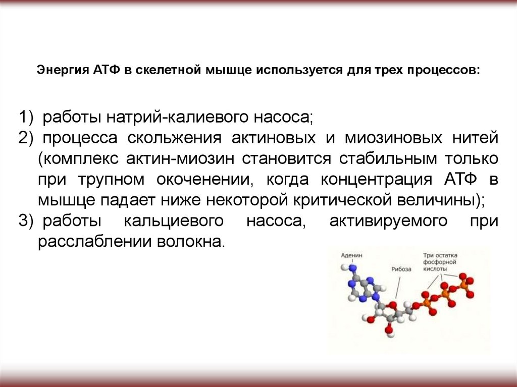 Энергия АТФ в скелетной мышце используется для трех процессов:1) работы натрий-калиевого насоса;