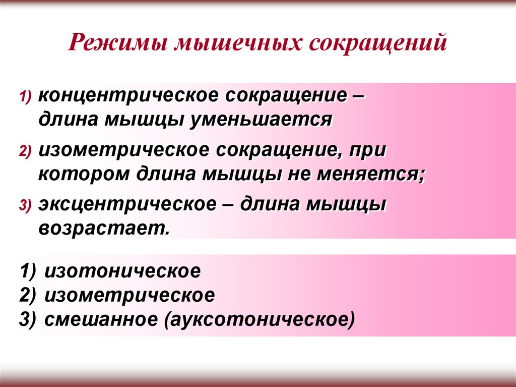 Режимы мышечных сокращений1) концентрическое сокращение –