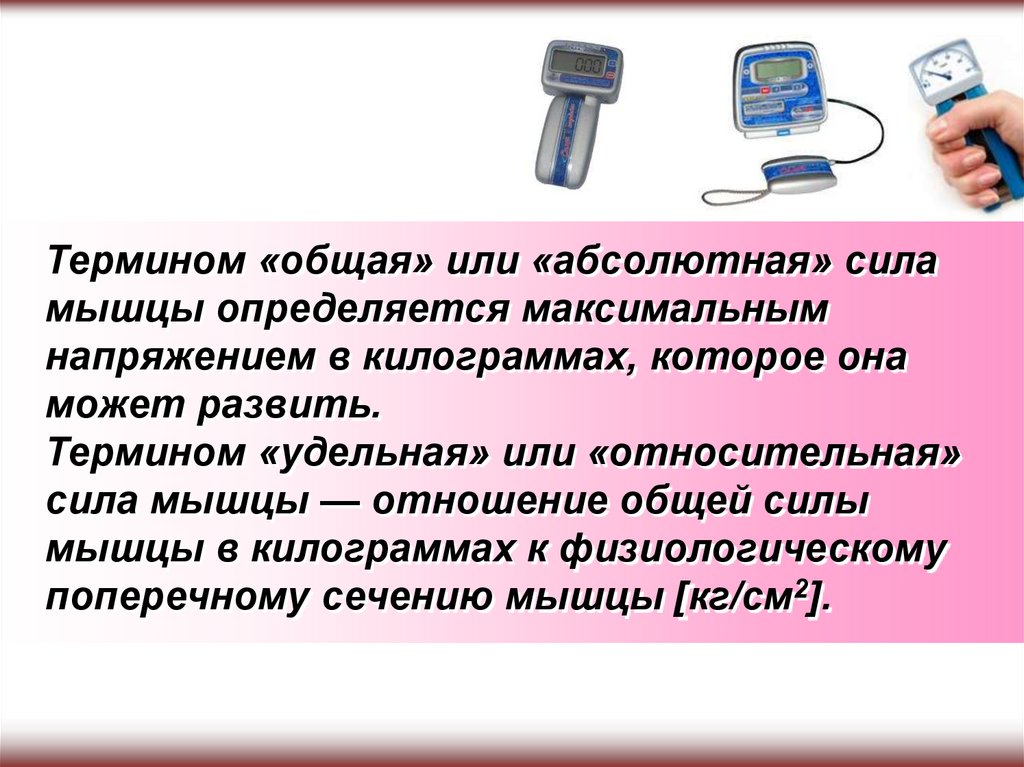 Термином «общая» или «абсолютная» силамышцы определяется максимальным