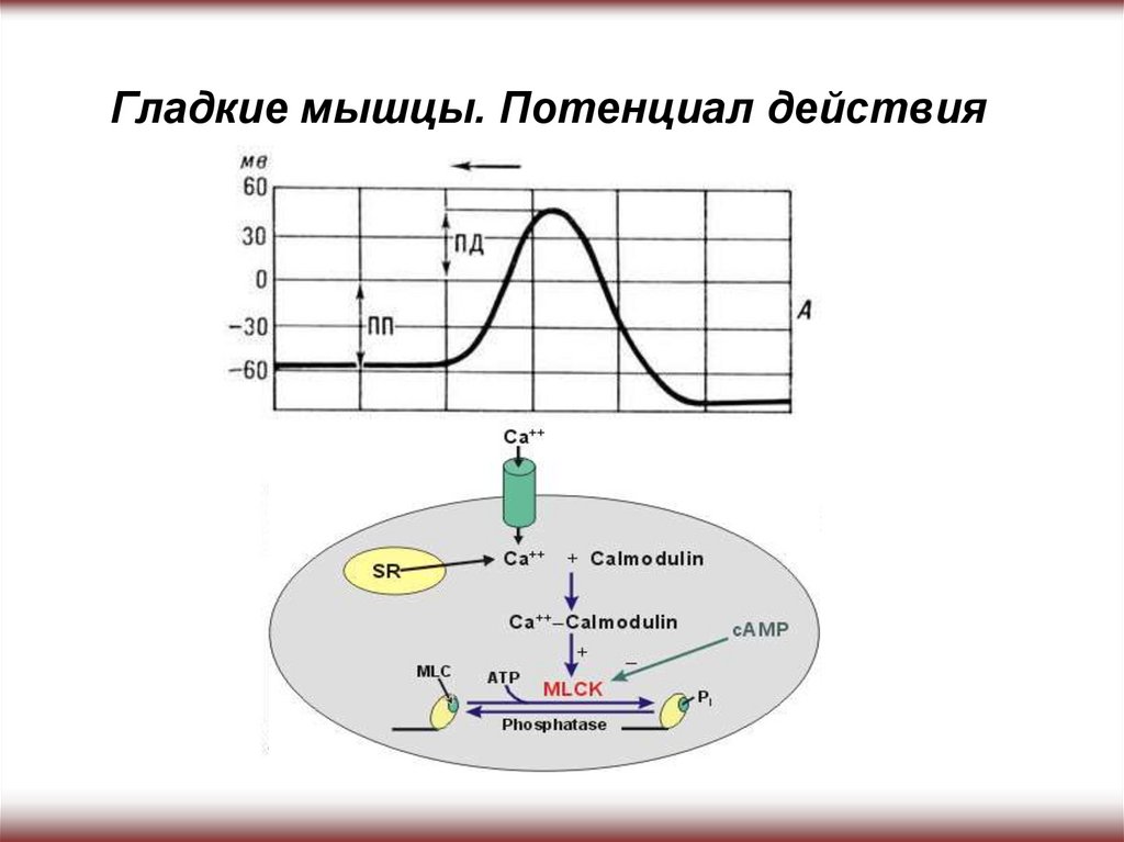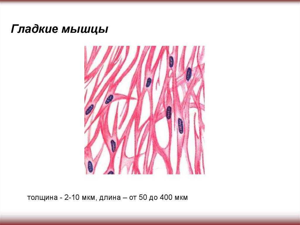 Гладкие мышцытолщина - 2-10 мкм, длина – от 50 до 400 мкм