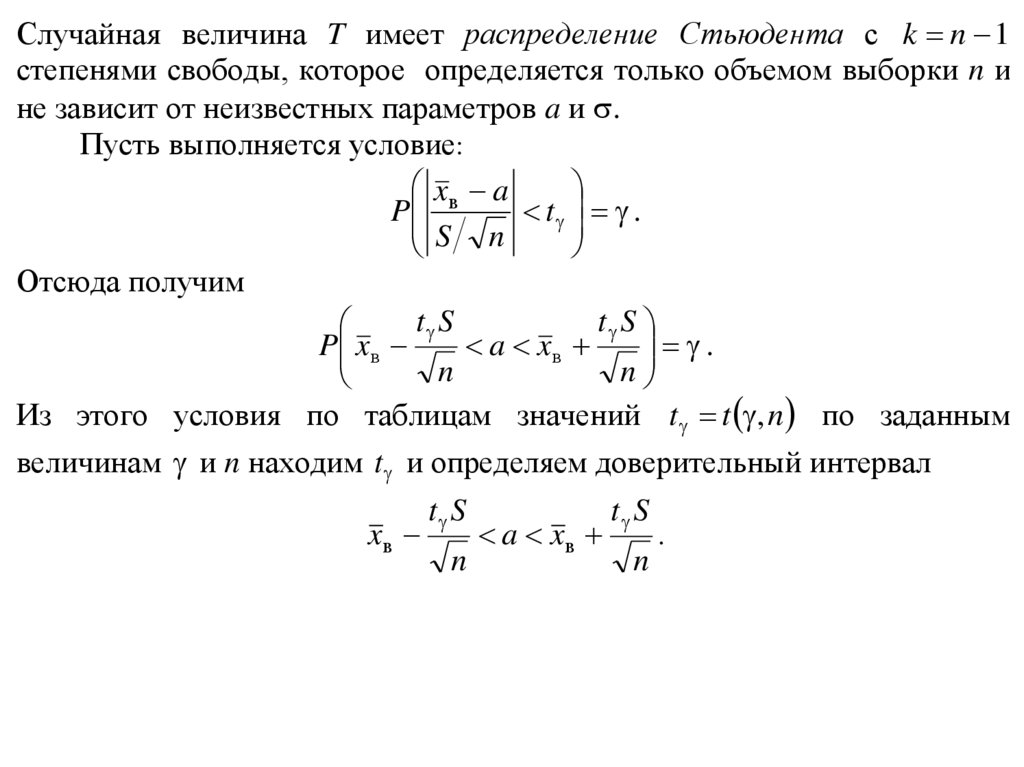 Доверительные интервалы для оценки математического ожидания a нормального распределения при неизвестном