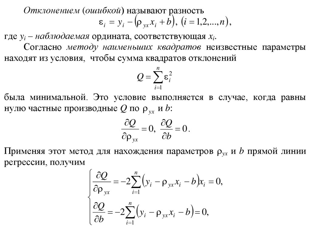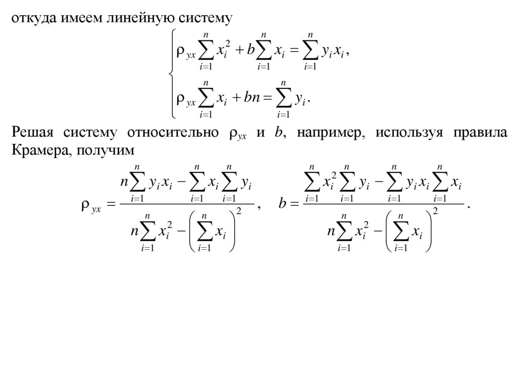 Применяя этот метод для нахождения параметров yx и b прямой линии