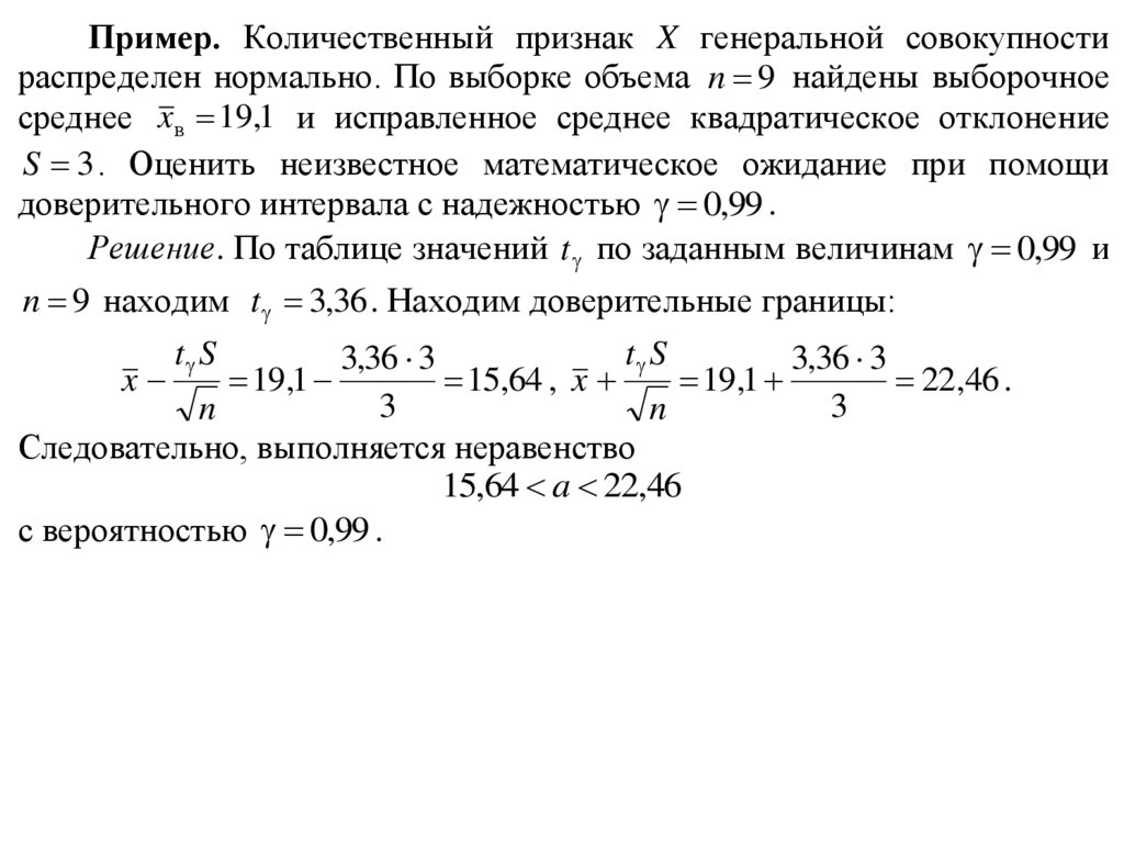 Пример. Количественный признак X генеральной совокупностираспределен нормально. По выборке объема n 9 найдены выборочное