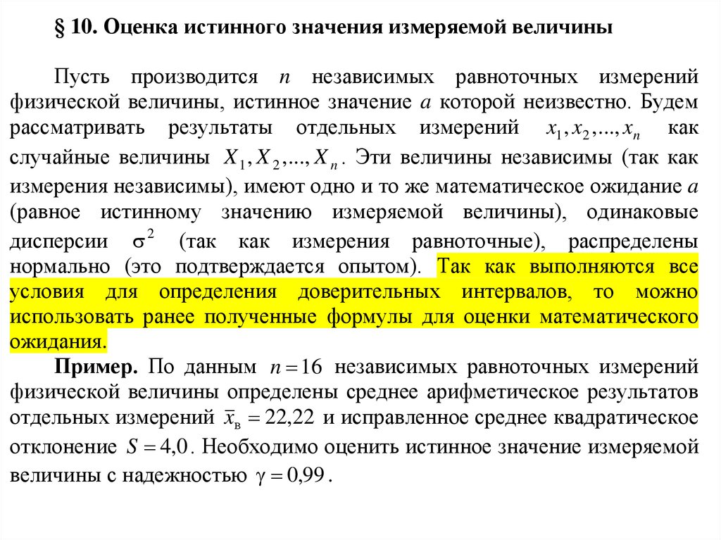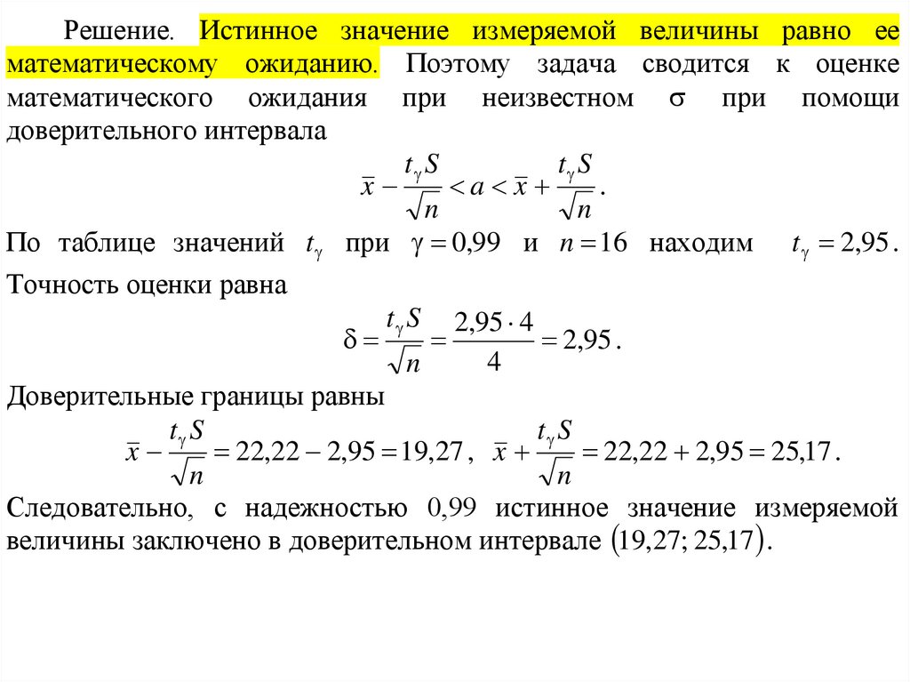 Следовательно, с надежностью 0,99 истинное значение измеряемой